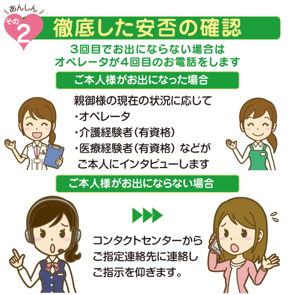 弊社のコンタクトセンターは、自治体様のコール業務(見守りサポート)から、不動産業界様の『空室対策』と『孤独死対策』まで、主に60才以上の方々を取り巻く問題解決のためのサービスを10年以上に渡って提供しています。